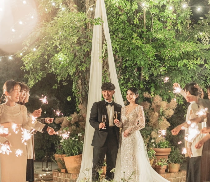 結婚式=式場ではありません。ふたりらしく結婚式のカタチを創りませんか?アウトドアがお好きなおふたりはキャンプ場で。新居を構えたおふたりはご自宅で。どこでも、その日その場所は結婚式場になります。おふたりだけのウエディングチームを創り、オリジナルウエディングをプロデュースします。